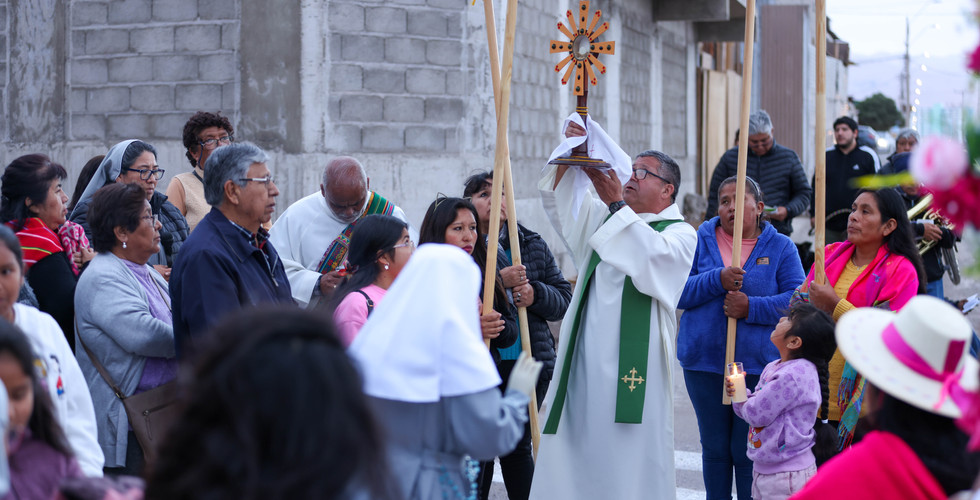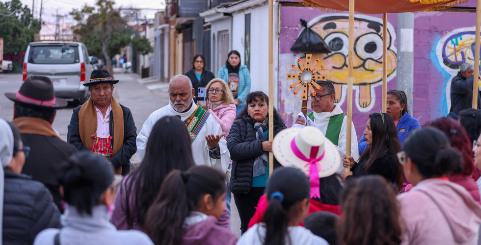 Al finalizar la celebración eucarística, se realizó una procesión por las calles del sector, acompañando al Cristo Sacramentado, la Cruz y la imagen de Santa Laura Montoya. Durante la procesión, se ofrecieron oraciones por los pueblos originarios, el agua, las mujeres y los antepasados. Posteriormente, en el templo, se llevó a cabo la bendición con el Santísimo Sacramento, culminando en el frontis del templo con los bailes tradicionales de nuestros pueblos del interior.