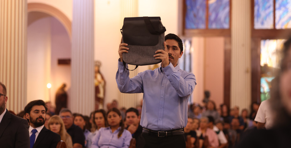 Durante el momento de las ofrendas, junto al pan y el vino, se presentó una mochila escolar, signo del camino que recorren los estudiantes en su proceso de formación, simbolizando también el compromiso de la Iglesia por acompañar la educación y el crecimiento integral de niños y jóvenes.