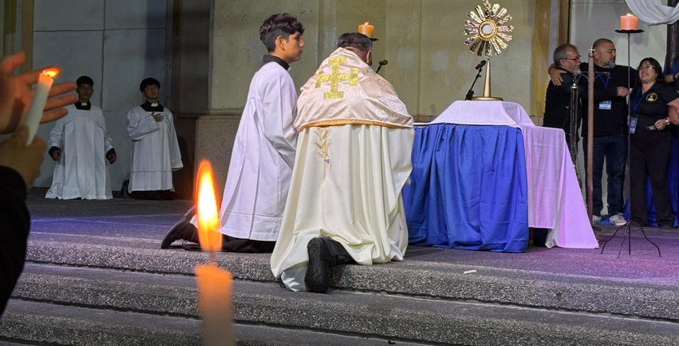Uno de los momentos más significativos de la noche fue la adoración eucarística, vivida en un ambiente de profundo recogimiento, oración y alabanza, donde los participantes pudieron encontrarse personalmente con Cristo vivo.